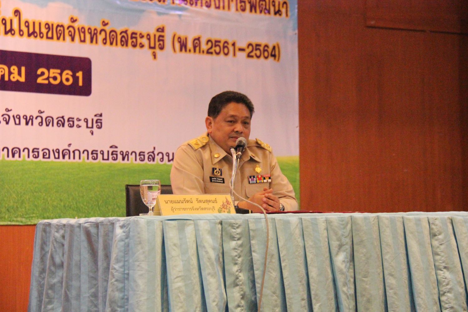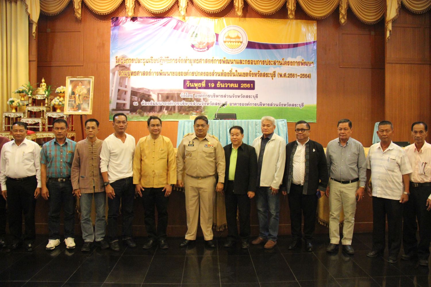 นายเรืองศักดิ์ วรหาญ ปลัดองค์การบริหารส่วนจังหวัด ปฏิบัติหน้าที่ นายกองค์การบริหารส่วนจังหวัดสระบุรี และนายวนพล จันทร์วิทัน ประธานสภาองค์การบริหารส่วนจังหวัดสระบุรี พร้อมด้วยผู้บริหาร หัวหน้าส่วนราชการ และบุคลากรขององค์การบริหารส่วนจังหวัดสระบุรี เข้าร่วมพิธีเปิดการประชุมเชิงปฏิบัติการการจัดทำยุทธศาสตร์การพัฒนาและกรอบการประสานโครงการพัฒนาตามยุทธศาสตร์การพัฒนาขององค์กรปกครองส่วนท้องถิ่นจังหวัดสระบุรี โดยมีนายแมนรัตน์ รัตนสุคนธ์ ผู้ว่าราชการจังหวัดสระบุรี เป็นประธานกล่าวมอบนโยบาย ในวันพุธที่ 19 ธันวาคม 2561 ณ ห้องประชุมสัมมนาองค์การบริหารส่วนจังหวัดสระบุรี