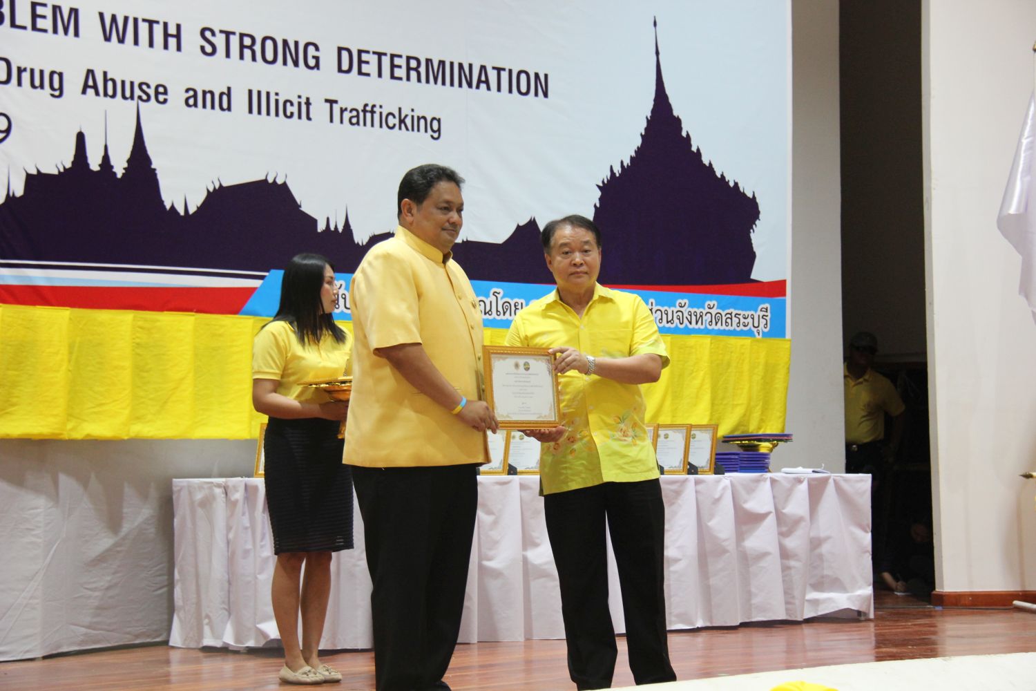 นายเรืองศักดิ์ วรหาญ ปลัดองค์การบริหารส่วนจังหวัดสระบุรี ปฏิบัติหน้าที่ นายกองค์การบริหารส่วนจังหวัดสระบุรี พร้อมด้วยหัวหน้าส่วนราชการ ร่วมกิจกรรมเนื่องในวันต่อต้านยาเสพติด ประจำปี 2562 และรับใบประกาศเกียรติคุณผู้ปฎิบัติงานด้านป้องกันและปราบปรามด้านยาเสพติดดีเด่น ในวันพุธที่ 26 มิถุนายน 2562 ณ หอประชุมศูนย์ราชการจังหวัดสระบุรี