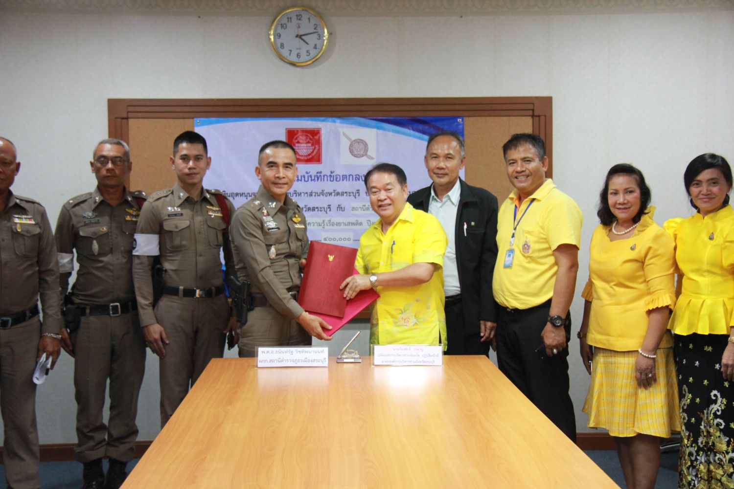 นายเรืองศักดิ์ วรหาญ ปลัดองค์การบริหารส่วนจังหวัด ปฏิบัติหน้าที่ นายกองค์การบริหารส่วนจังหวัดสระบุรี และ พ.ต.อ.ธนินรัฐ วิชทิพนานนท์ ผู้กำกับการสถานีตำรวจภูธรเมืองสระบุรี ลงนามในบันทึกข้อตกลงโครงการให้ความรู้เรื่องยาเสพติด ประจำปี 2562 ในวันพุธที่ 26 มิถุนายน 2562 ณ ห้องประชุมย่อย 2 องค์การบริหารส่วนจังหวัดสระบุรี
