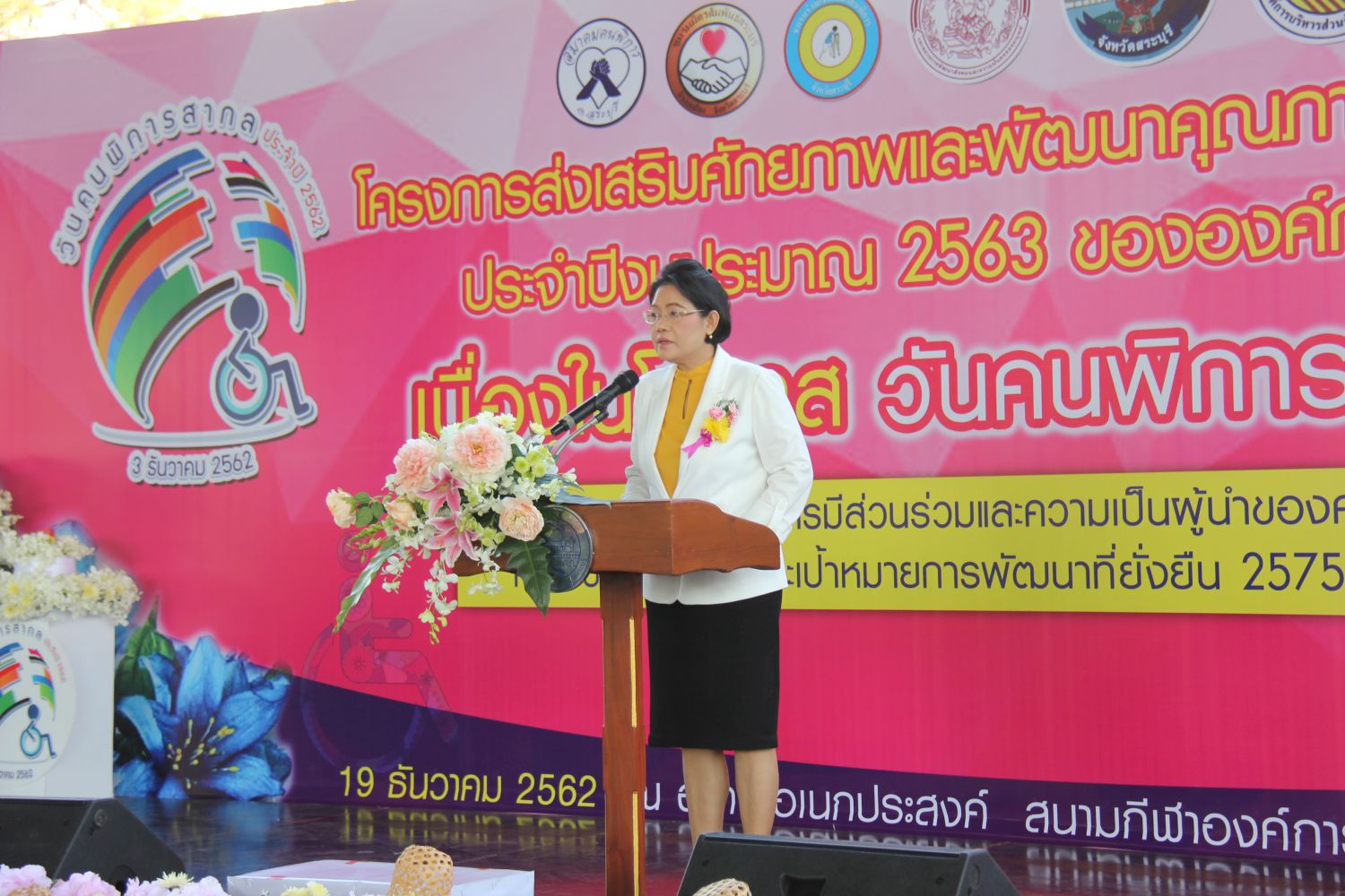 นายสุจิน บุญมาเลิศ รองปลัดองค์การบริหารส่วนจังหวัดสระบุรี พร้อมด้วยผู้บริหาร หัวหน้าส่วนราชการ และบุคลากรขององค์การบริหารส่วนจังหวัดสระบุรี ร่วมกิจกรรมวันคนพิการสากล จังหวัดสระบุรี ประจำปี 2562 สร้างการมีส่วนร่วม เสริมความเป็นผู้นำคนพิการ สู่เป้าหมายการพัฒนาที่ยั่งยืน ค.ศ.2030 (Promoting the participation of persons with disabilities and their leadership: taking action on the 2030 Development Agenda) โดยมีนางอังคณา ชิตะติตติ รองผู้ว่าราชการจังหวัดสระบุรี เป็นประธานในการเปิดงาน ในวันพฤหัสบดีที่ 19 ธันวาคม 2562 ณ อาคารโดมอเนกประสงค์ สนามกีฬาองค์การบริหารส่วนจังหวัดสระบุรี
