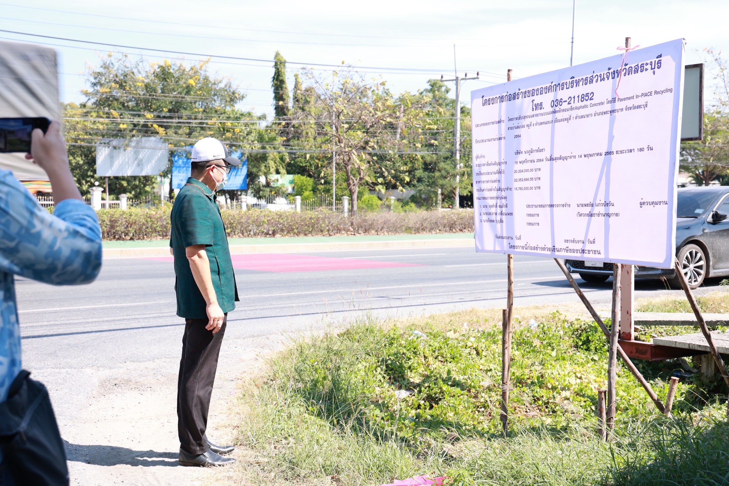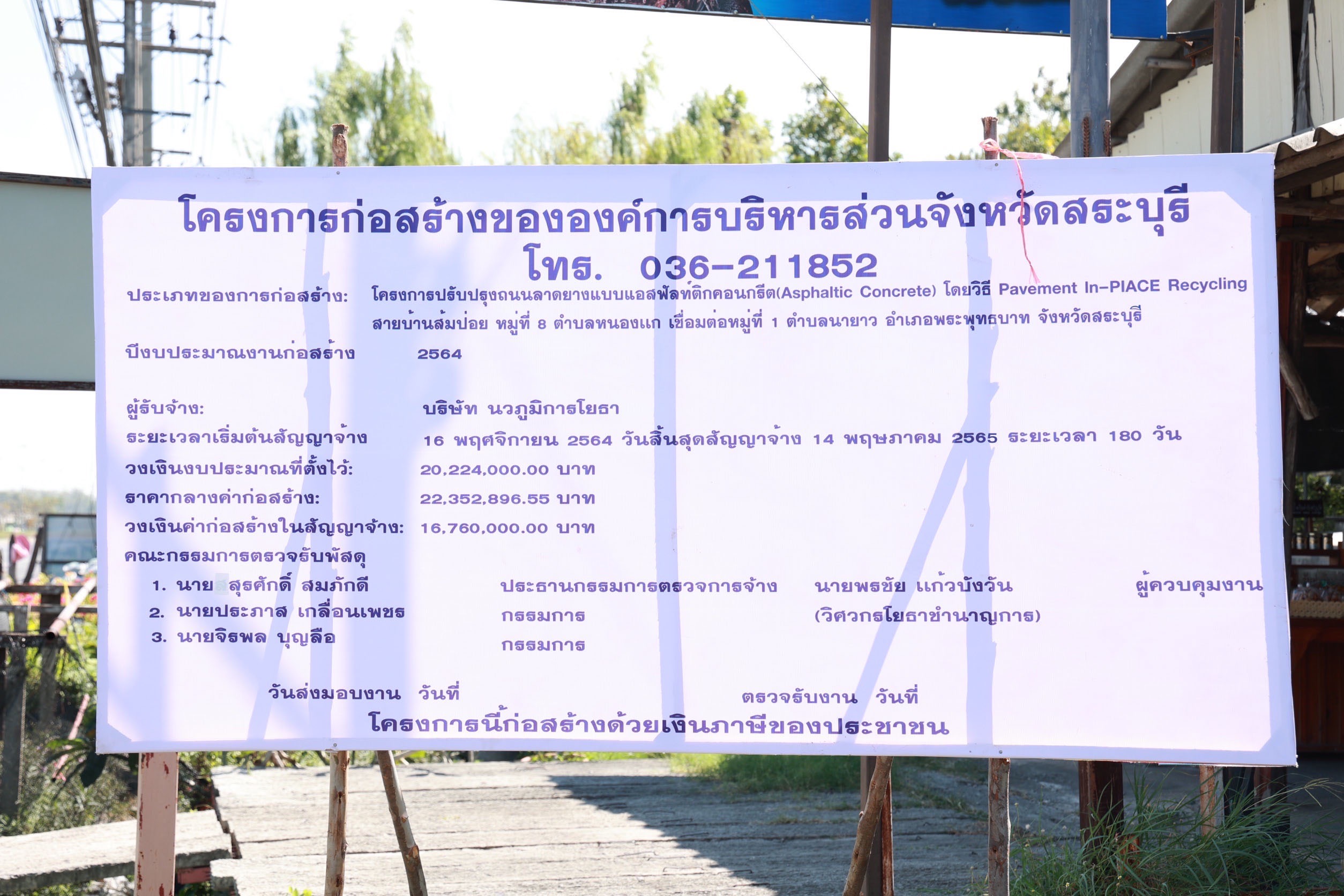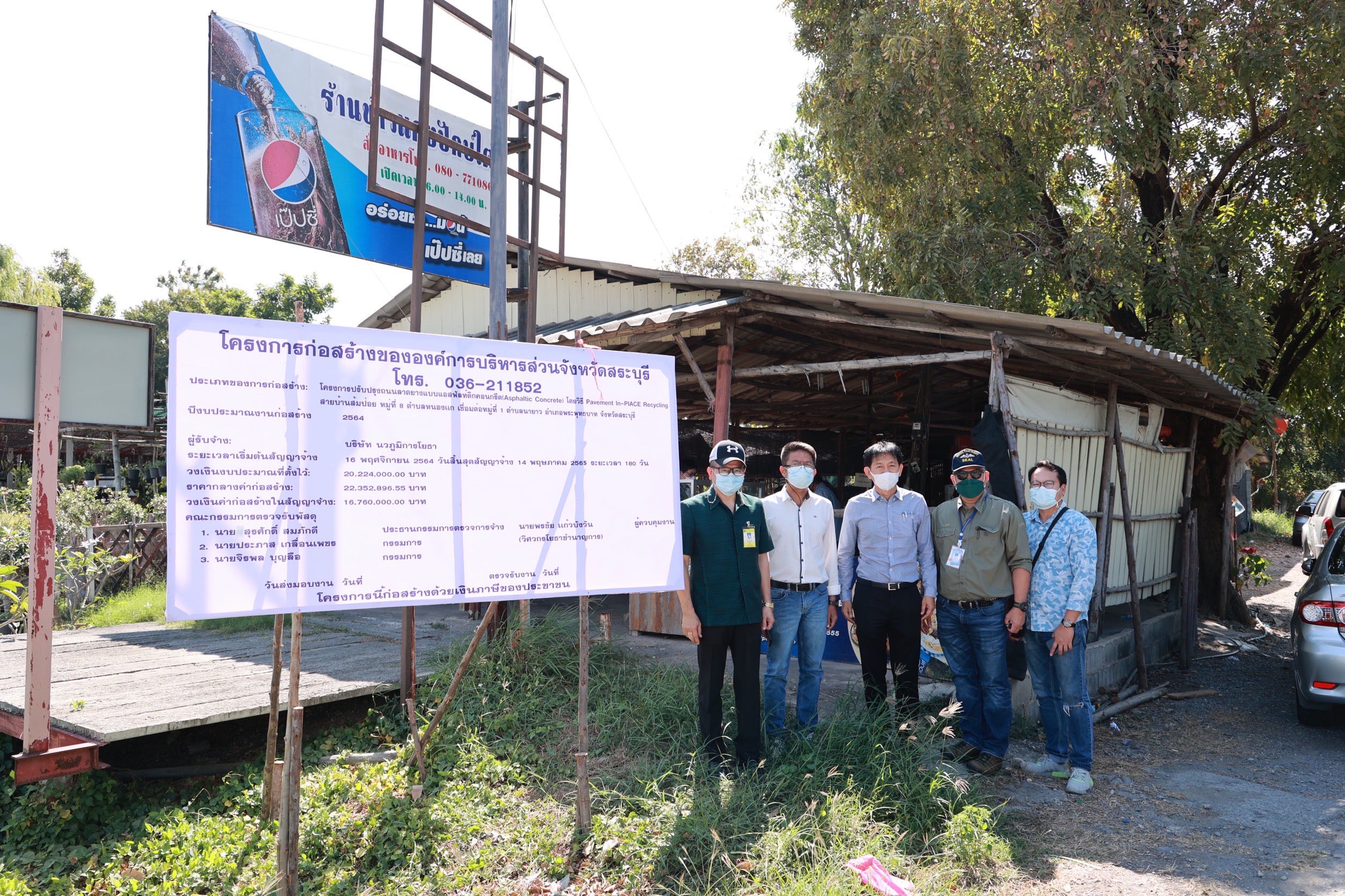 นายสุรศักดิ์ สมภักดี ผู้อำนวยการกองช่าง นายประภาส เกลื่อนเพชร หัวหน้าสำนักปลัดองค์การบริหารส่วนจังหวัด พร้อมทั้งผู้ควบคุมงาน และเจ้าหน้าที่ประสานงาน องค์การบริหารส่วนจังหวัดสระบุรี สำรวจพื้นที่โครงการความโปร่งใสในการก่อสร้างภาครัฐ (CoST) ในโครงการปรับปรุงถนนลาดยางแบบแอสฟัลท์ติกคอนกรีต (Asphaltic Concrete) โดยวิธี Pavement In-Place Recycling สายบ้านส้มป่อย หมู่ที่ 8 ต.หนองแก เชื่อมหมู่ที่ 1 ต.นายาว อ.พระพุทธบาท จ.สระบุรี พร้อมสะพาน คสล.