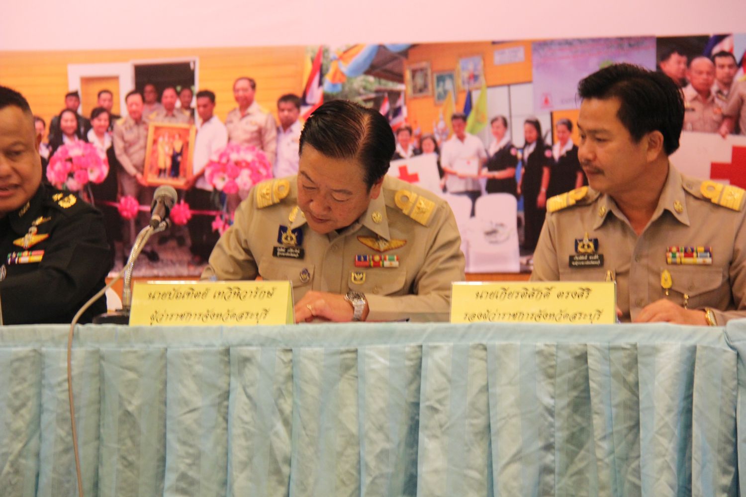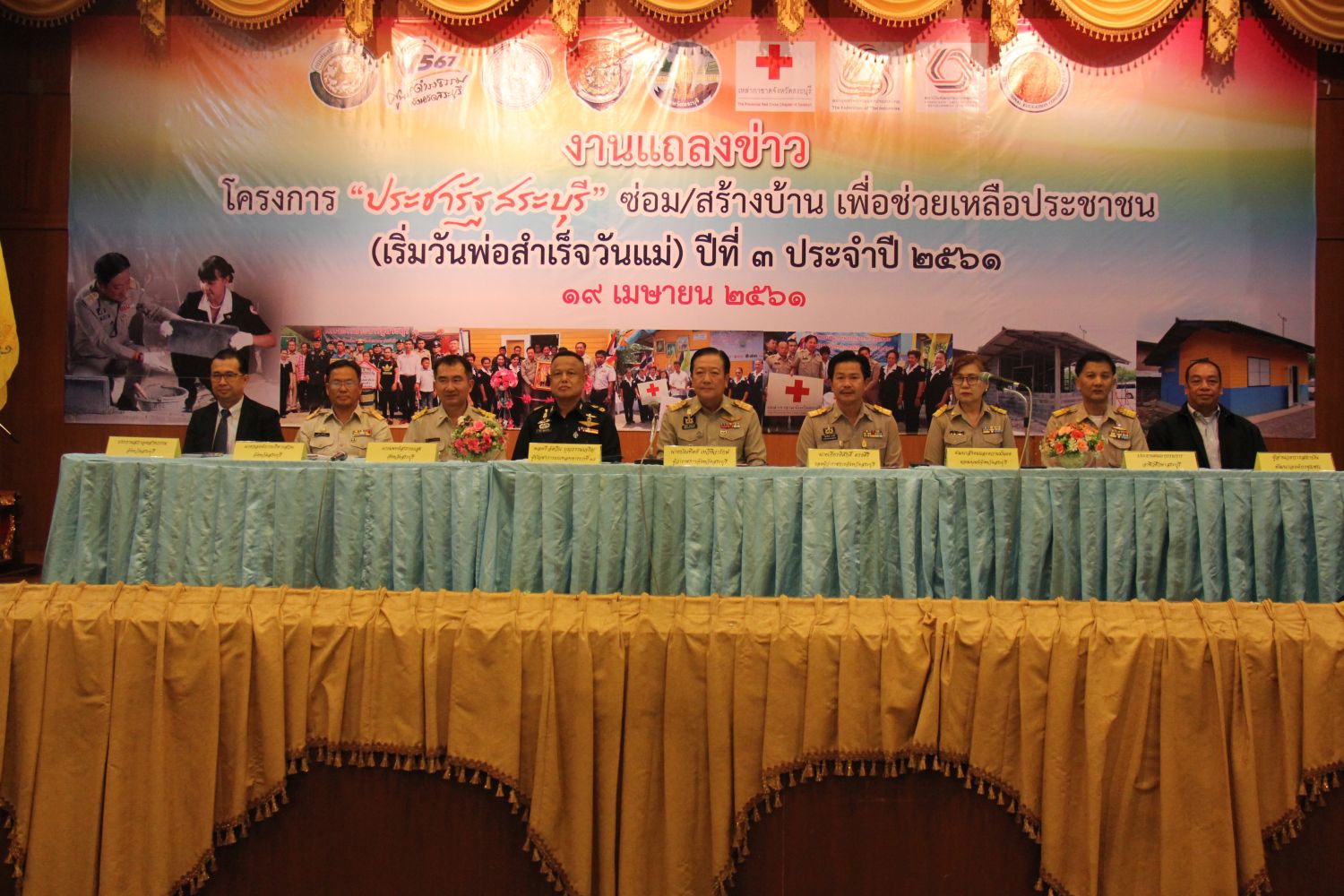 ในวันพฤหัสบดี ที่ 19 เมษายน 2561 นายบัณฑิตย์ เทวีทิวารักษ์ ผู้ว่าราชการจังหวัดสระบุรี นายเกียรติศักดิ์ ตรงศิริ รองผู้ว่าราชการจังหวัดสระบุรี นายสุจิน บุญมาเลิศ รองปลัดองค์การบริหารส่วนจังหวัด รักษาราชการแทน ปลัดองค์การบริหารส่วนจังหวัด ปฏิบัติหน้าที่ นายกองค์การบริหารส่วนจังหวัดสระบุรี ร่วมงานแถลงข่าว โครงการ “ประชารัฐสระบุรี” ซ่อม/สร้างบ้าน เพื่อช่วยเหลือประชาชน (เริ่มวันพ่อสำเร็จวันแม่) ปีที่ 3 ประจำปี 2561