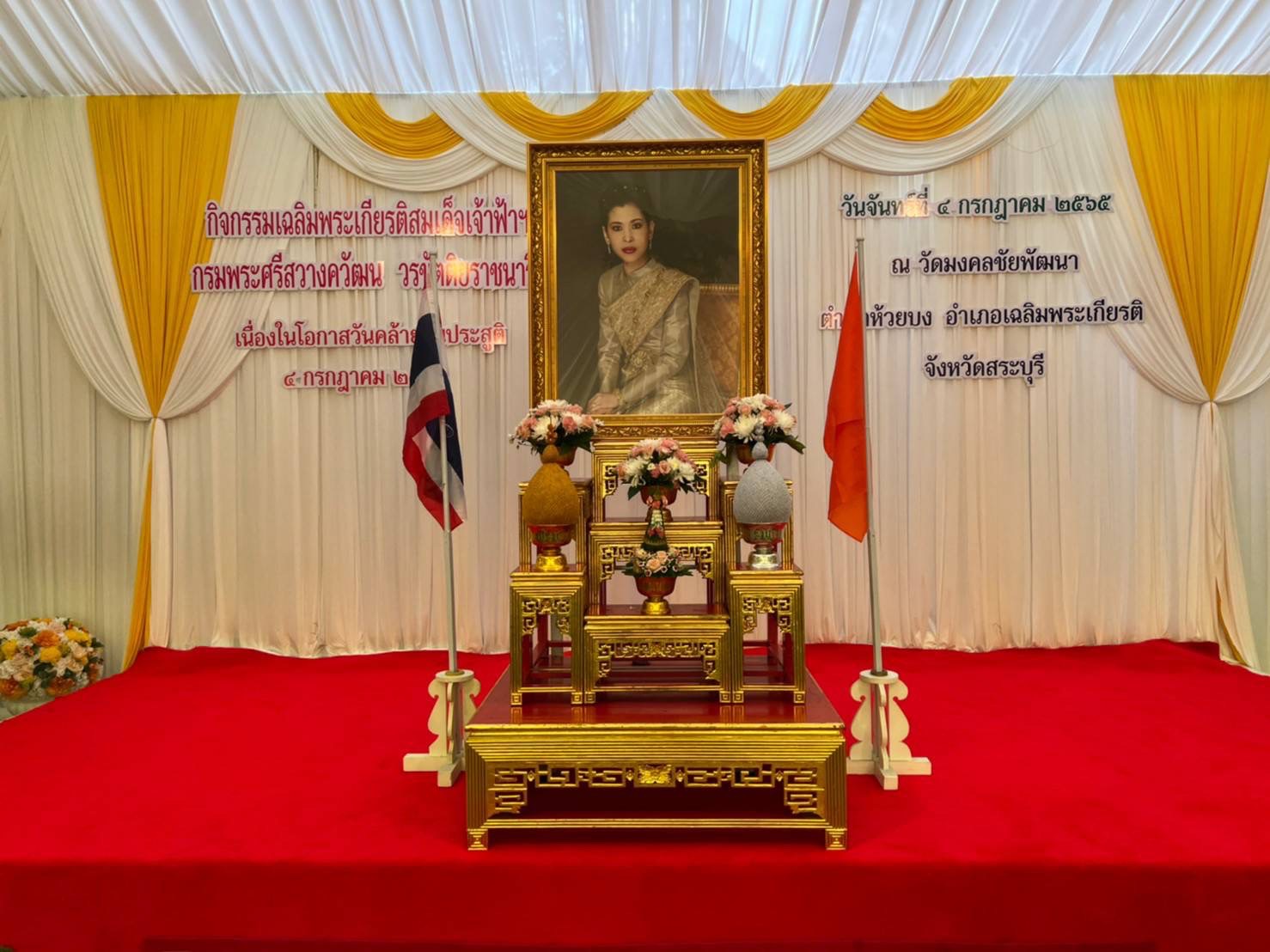 นางพัชรี เคร่งครัด หัวหน้าสำนักปลัดองค์การบริหารส่วนหวัด ร่วมกิจกรรมเฉลิมพระเกียรติสมเด็จพระเจ้าน้องนางเธอ เจ้าฟ้าจุฬาภรณวลัยลักษณ์ อัครราชกุมารี กรมพระศรีสวางควัฒน วรขัตติยราชนารี เนื่องในโอกาสวันคล้ายวันประสูติ ในวันจันทร์ที่ 4 กรกฎาคม 2565 ณ วัดมงคลชัยพัฒนา ต.ห้วยบง อ.เฉลิมพระเกียรติ จ.สระบุรี