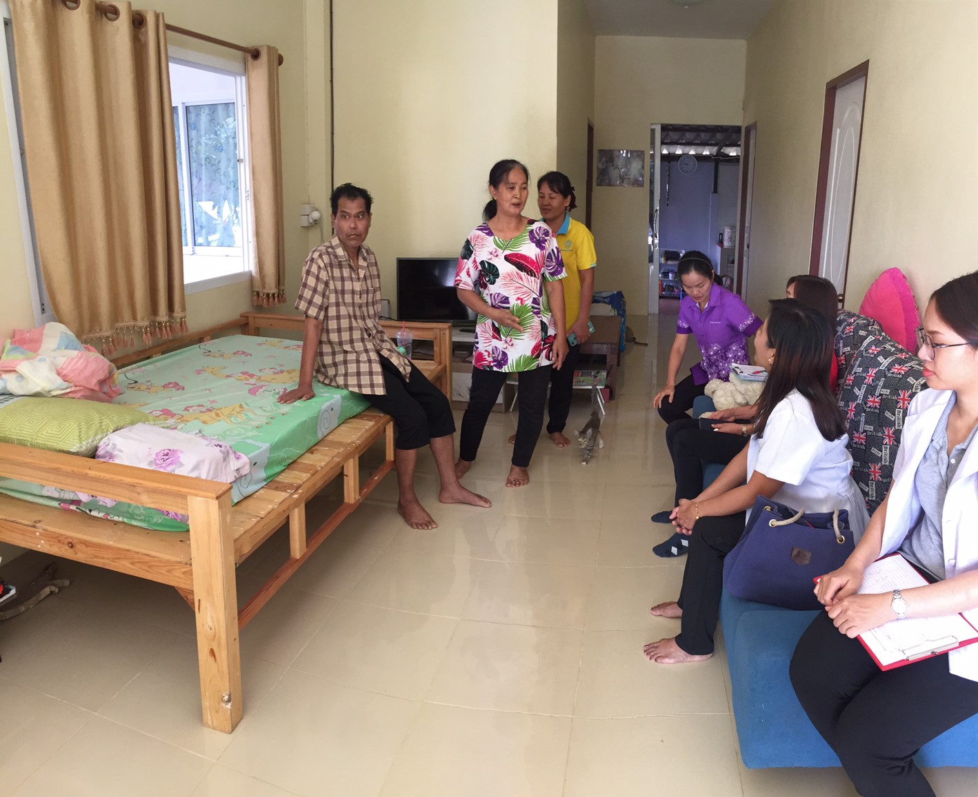 วันศุกร์ที่ 10 มกราคม 2563 เวลา 08.30-16.30 น. ลงพื้นที่ติดตามการเข้าถึงบริการการฟื้นฟูสมรรถภาพผู้ป่วย ผู้สูงอายุและคนพิการ โดยนักกายภาพบำบัดโรงพยาบาลสระบุรี และเจ้าหน้าที่กองทุนฟื้นฟูฯ ร่วมกับ นักพัฒนาชุมชน องค์การบริหารส่วนตำบลดาวเรือง เทศบาลตำบลตะกุด องค์การบริหารส่วนตำบลหนองยาว เจ้าหน้าที่โรงพยาบาลส่งเสริมสุขภาพระดับตำบล นักกายภาพบำบัดโรงพยาบาลสระบุรี และอาสาสมัครสาธารณสุข นักบริบาล ร่วมลงพื้นที่ติดตามฯ กายอุปกรณ์ และการปรับสภาพบ้าน ณ ตำบลหนองยาว ตำบลดาวเรือง และตำบลตะกุด อำเภอเมืองสระบุรี จังหวัดสระบุรี ติดตามการใช้อุปกรณ์ (แบบให้ยืม) รถเข็นวิลแชร์ สามล้อโยก เตียงไม้เตี้ย และ Rollator และรวมจำนวน 4 ราย และการปรับสภาพแวดล้อมที่อยู่อาศัยเพื่อการฟื้นฟูสมรรถภาพ ปรับปรุงห้องน้ำ เปลี่ยนสุขภัณฑ์ ติดตั้งราวจับบันไดจำนวน 4 ราย