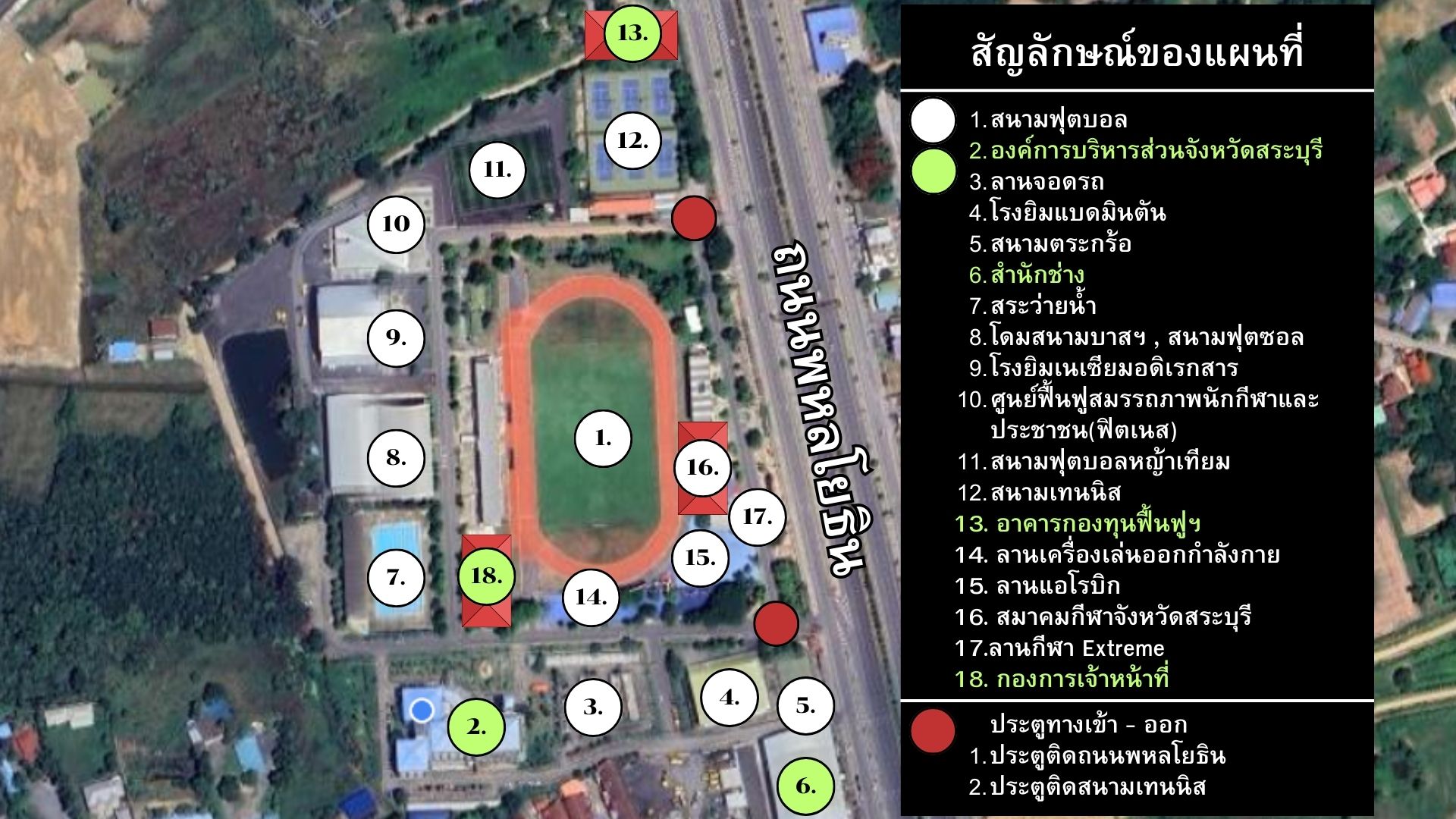 ติดต่อ/สอบถาม เกี่ยวกับสนามกีฬา โทร 036-340180 หรือโทร 036-211852 ต่อ 132